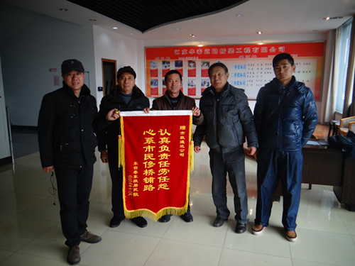 2013年10月底,我單位對東臺巷進行改造施工,東臺巷改造在2013年后街后巷中屬于相對困難的一處,因為該巷道是處于北門大街的一條歷史巷道,根據(jù)城建局要求,此巷道須鋪設青磚路面。剛開始居民對這青磚路面很不放心,覺得很容易壞,堅決要弄混凝土路面。由于居民的不理解,不支持,導致我們施工過程中天天遭遇居民的阻工。為了把工作做到實處,我們首先同居民進行溝通協(xié)調(diào),并先鋪設一些支巷道作為樣板,給居民們參考。經(jīng)過我們項目部成員的努力,居民終于同意我們施工。老小區(qū)的施工難度較大,特別是運輸極不方便。為了使將工程做成真正的惠民工程、民心工程,我們在施工工程中,要求項目部全體成員一定要將民眾要求放在首位,確保文明施工。在支巷道施工過程中,我們都會將巷道內(nèi)的雜質(zhì)及垃圾堆積物全部清除出去;將各家各戶的踏坡全部拆除,統(tǒng)一用青磚鋪設;路面的鋪設嚴格按照施工規(guī)范要求,如表面平整、縱橫縫順直、灌封密實。所以,每條支巷道我們都做到了:整潔、統(tǒng)一、平順的要求,居民看到之后也漸漸接受了我們的做法,也漸漸相信了我們、認同了我們,也體會到了我們施工的艱難。工程結束后,大家對改造的效果相當滿意,12月份,東臺巷居民代表帶著全體居民的心愿,向公司獻上錦旗。