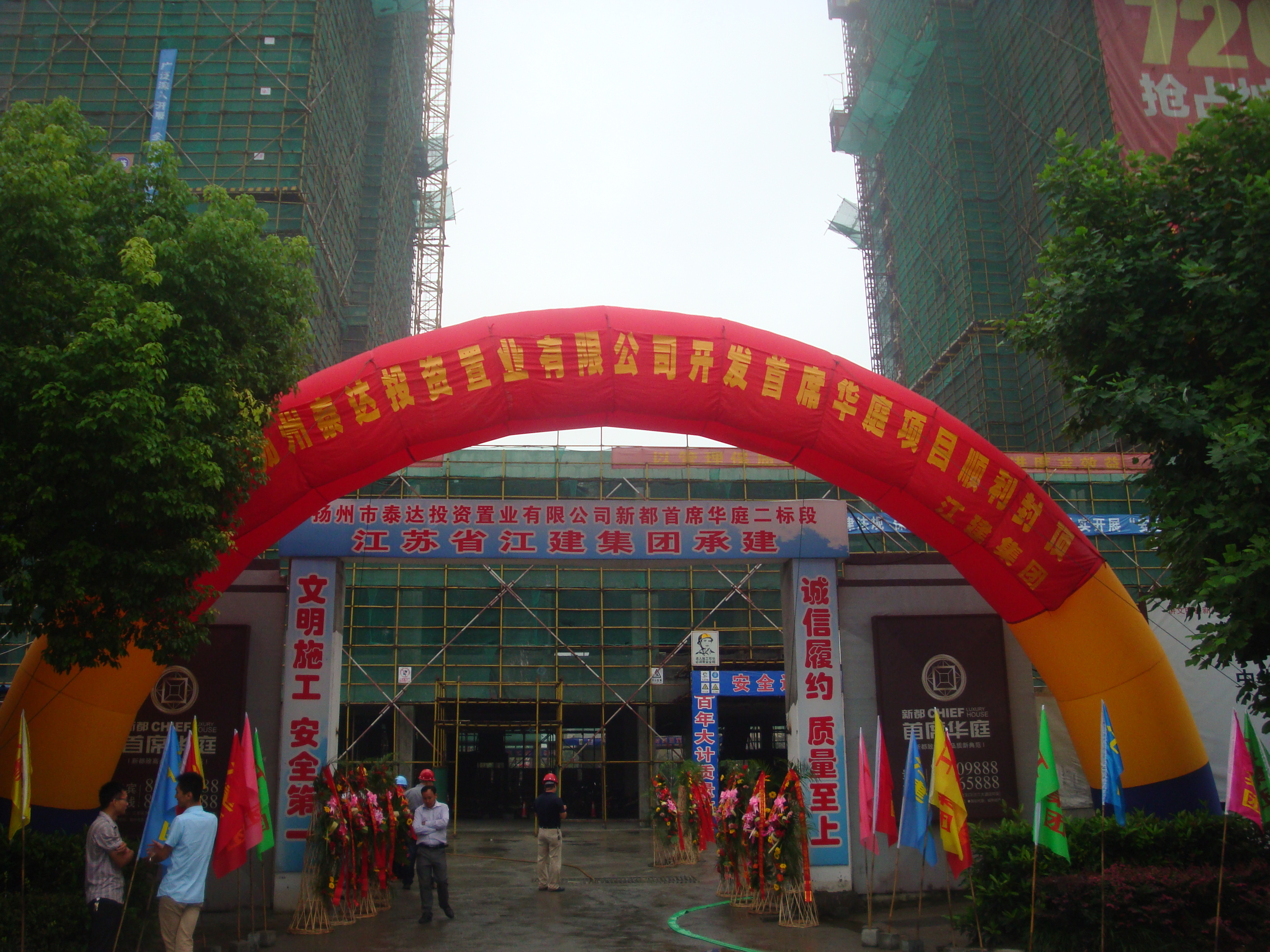 本工程由揚州市泰達投資置業(yè)有限公司投資興建,揚州市建筑設(shè)計院設(shè)計,江蘇江建集團、江蘇邗建集團建設(shè),揚州市建興監(jiān)理有限公司監(jiān)理。該項目位于江都區(qū)新都路東側(cè)、灰糞港北側(cè),建筑為高層綜合樓:地下1層,地上26層,總建筑面積51751㎡。其中地下一層為車庫,1-3層為商鋪和商務(wù)辦公,4-26層為住宅樓。