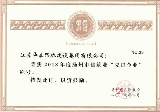 2月11日,春節(jié)后的第一個(gè)工作日,揚(yáng)州市建筑業(yè)發(fā)展大會(huì)在揚(yáng)州會(huì)議中心隆重召開(kāi),會(huì)上對(duì)2018年度全市建筑業(yè)先進(jìn)單位和先進(jìn)個(gè)人進(jìn)行了表彰,江蘇華泰路橋建設(shè)集團(tuán)有限公司獲評(píng)市建筑業(yè)先進(jìn)企業(yè)。此外集團(tuán)公司項(xiàng)目經(jīng)理丁仲明榮獲市建筑業(yè)先進(jìn)個(gè)人榮譽(yù)。2018年,集團(tuán)公司在董事會(huì)、總裁辦的正確領(lǐng)導(dǎo)下,面對(duì)錯(cuò)綜復(fù)雜的市場(chǎng)形勢(shì),主動(dòng)作為、穩(wěn)中求進(jìn)。在安全管理、質(zhì)量管理、資本運(yùn)作、品牌建設(shè)、社會(huì)效益、經(jīng)濟(jì)指標(biāo)等方面取得了不俗的成績(jī),中標(biāo)項(xiàng)目金額更創(chuàng)歷年來(lái)新高,為公司長(zhǎng)遠(yuǎn)發(fā)展奠定了基礎(chǔ)。