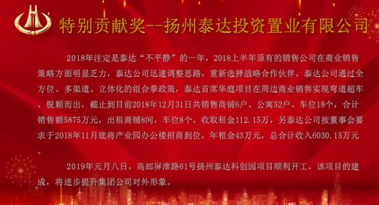 2019年2月23日,集團(tuán)公司在揚(yáng)州廣陵產(chǎn)業(yè)園召開2018年公司年會(huì)。